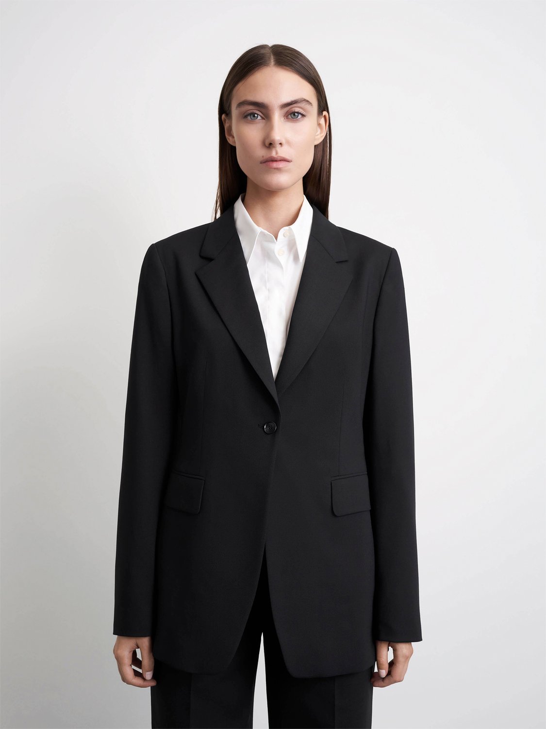 Blazer i struktureret twill-polyuldblanding. Almindelig pasform. Notch-revers. Lukning med Single knap. Skarpe skuldre. Skræddersyet talje. Single ventilation bagpå. Kysseknapper på ærmerne. Fremstillet i Rumænien